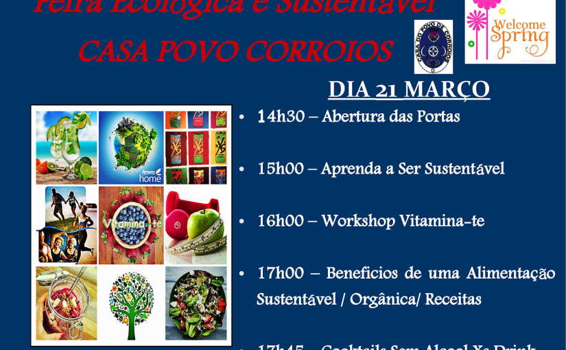 TEAMWAY NA PRIMEIRA EDIÇÃO DA FEIRA ECOLÓGICA E SUSTENTÁVEL – CASA POVO CORROIOS PROGRAMA Estão todos convidados a participar neste evento, basta passar na Casa Povo de Corroios, no dia 21 de Março (Sábado). Esta iniciativa, tem como intuito dar a conhecer as vantagens de sermos mais saudáveis e sustentáveis (economia/ambiental/social), e podermos desfrutar de … Continue reading EVENTO: Feira Ecológica e Sustentável “Welcome Spring”